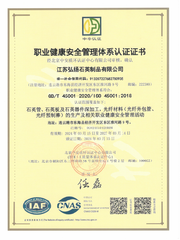 職業(yè)健康安全管理體系認(rèn)證證書(shū)